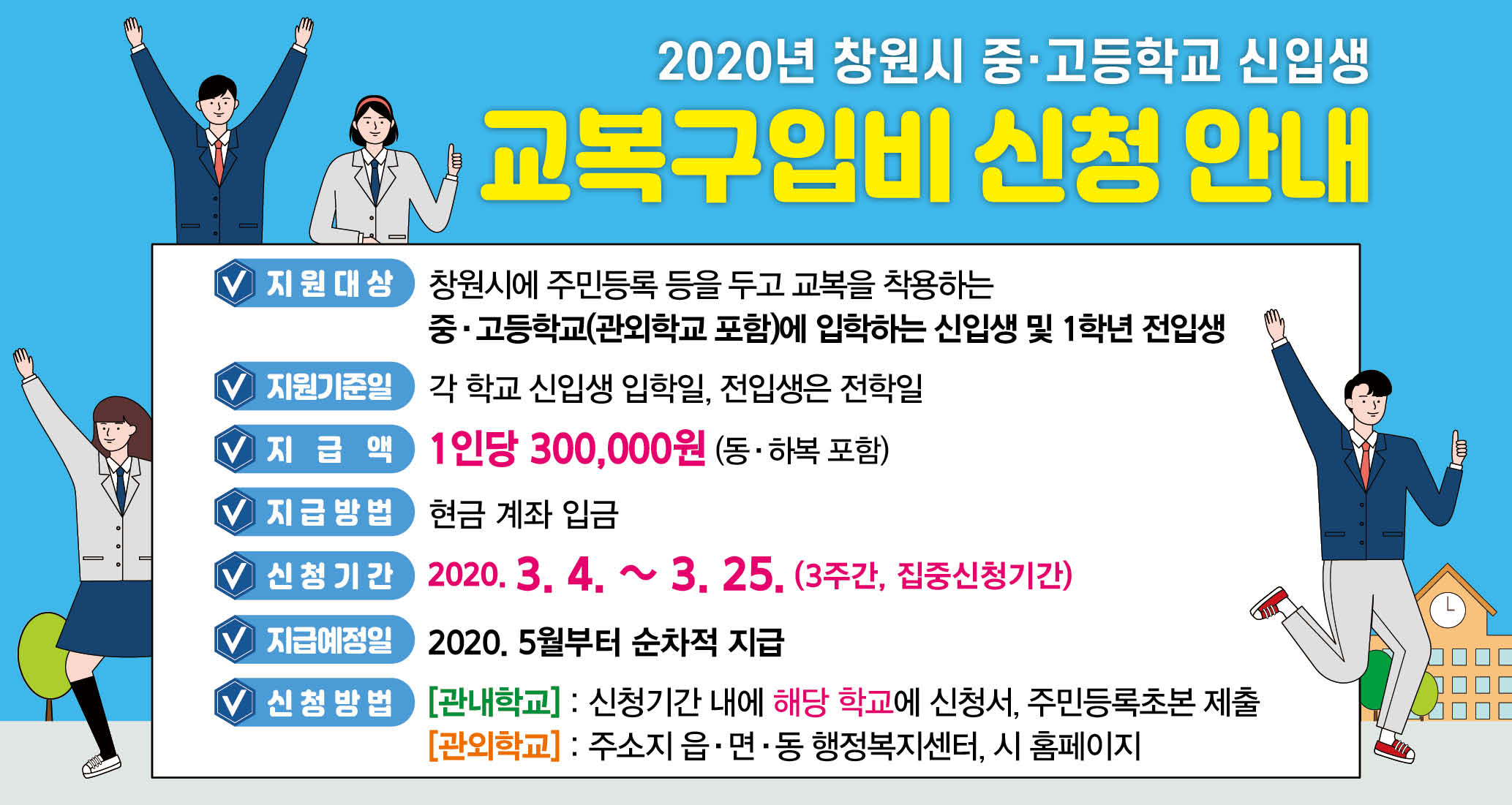 <2020년 창원시 중 고등학교 신입생 교복구입 지원사업 안내>
